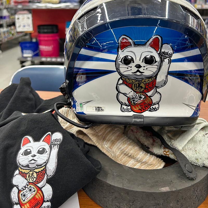 マルク・マルケス選手が日本GPの際に着用するヘルメットにデザインされている”招き猫”をヘルメットに描きました。 お絵描きご希望の方 イベントでのお絵描きご希望の方はご予約をお勧めします。イベントスケジュールはこちらから イベントスケジュール 価格について LINEで問い合わせ InstagramのDMより