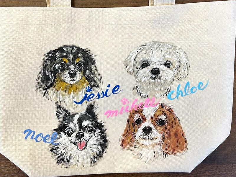 キャンバストートにワンちゃんをお絵描きしました