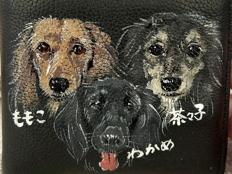 3匹のワンちゃんを財布にお絵描きしました