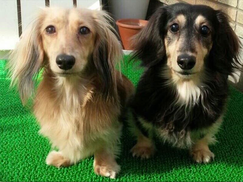 財布にワンちゃんを2匹描きました