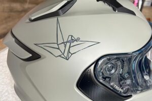 ヘルメットに折り鶴を描きました